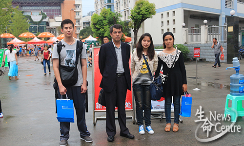 6:00,由各学生组织成员组成的志愿者团队就已到达迎新地点布置现场,静待新生的到来。有了前一天的经验,志愿者们有条不紊地进行迎新工作:扫描新生信息,填写表格,发放一卡通和资料,办理绿色通道,为新生拍照留念,为远道而来的家长、学生送水……男生们帮家长提行李送新生到宿舍,凉爽的天气竟也有汗珠浸上他们的额头。