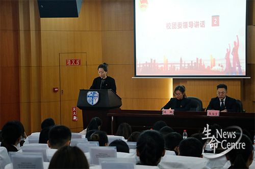 首先,校团委书记罗妍妍同志发表讲话。她代表学校团委充分肯定了五年来威尼斯wns8885556团委的工作,并希望威尼斯wns8885556团委要牢记时代使命,提高政治定位,助力提升青年一代的思想觉悟,在习近平新时代中国特色社会主义思想的指导下坚定正确的政治方向,让社会主义核心价值观在新一代青年身上得到体现,打造一个具有生命特色、生命品牌的团组织。